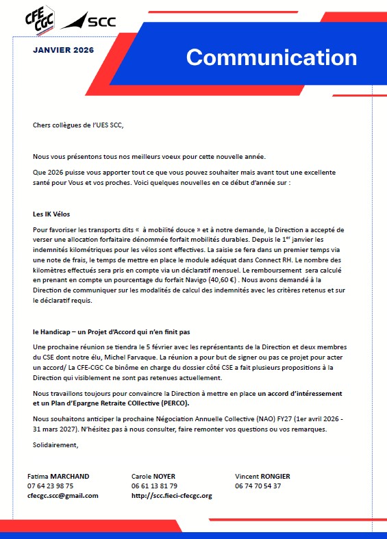Communication janvier 2026