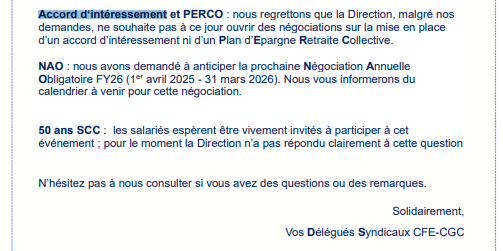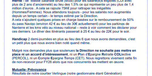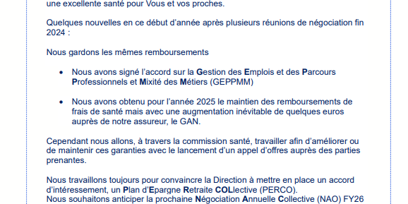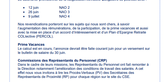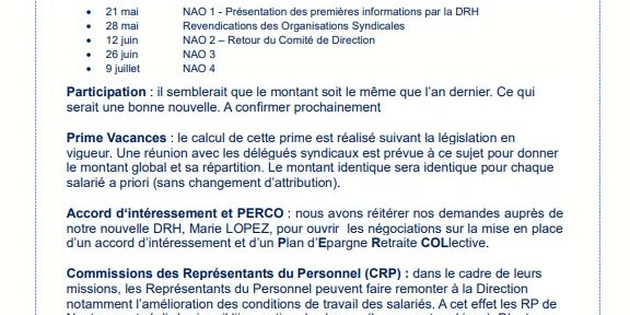 Quelques nouvelles depuis notre signature du PV de désaccord concernant la Négociation Annuelle Obligatoire (NAO).